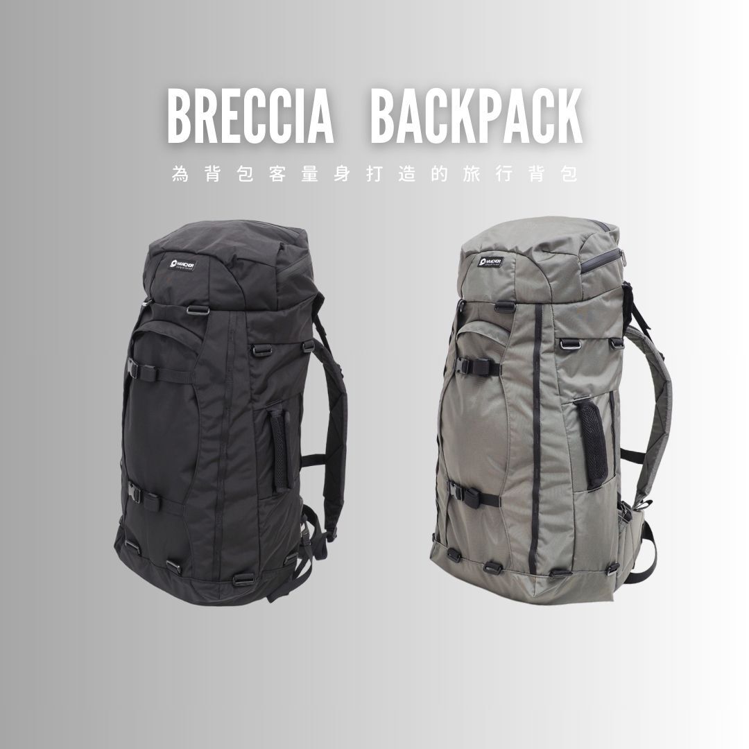 Breccia 是一種沉積岩,這種經由巨大能量的水流搬運後沉積而成的岩石,就像旅人遊走世界各地,嘗試各種新鮮的人事物一樣,藉由提供完美的背負、收納機能,讓我們更輕鬆的在外走闖、更自在的享受旅行。